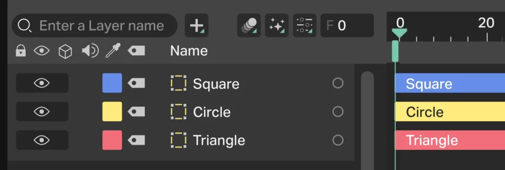 While we’re here, we may as well explore how to animate a layer using the timeline! Lets say that from Frame 10, we want to reduce the scale of the Circle layer, and that this will occur over a period of 30 frames.